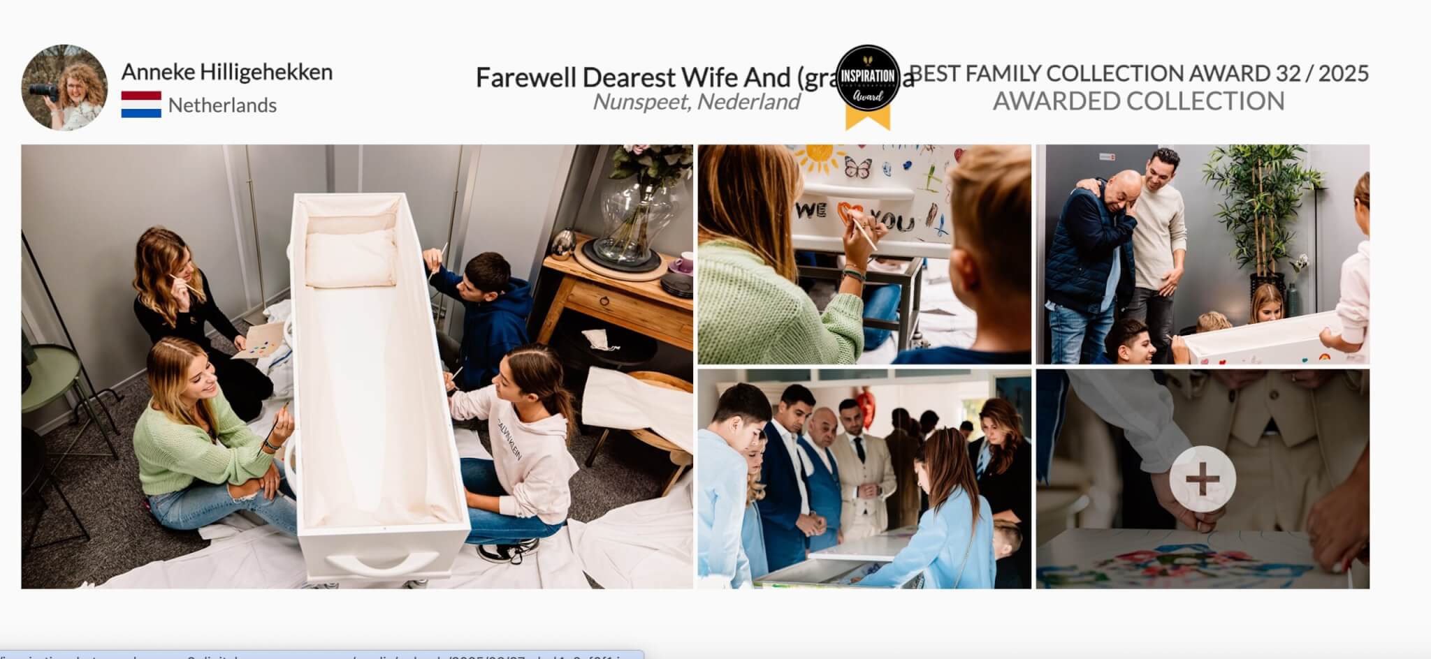 Afscheid vastleggen is een van de meest kwetsbare en betekenisvolle vormen van fotografie. Als uitvaartfotograaf werk ik met grote toewijding om momenten van liefde, verbondenheid en loslaten op een respectvolle manier in beeld te brengen. Dat mijn werk ook internationaal is opgevallen en erkend, is voor mij zowel bijzonder als dankbaar.